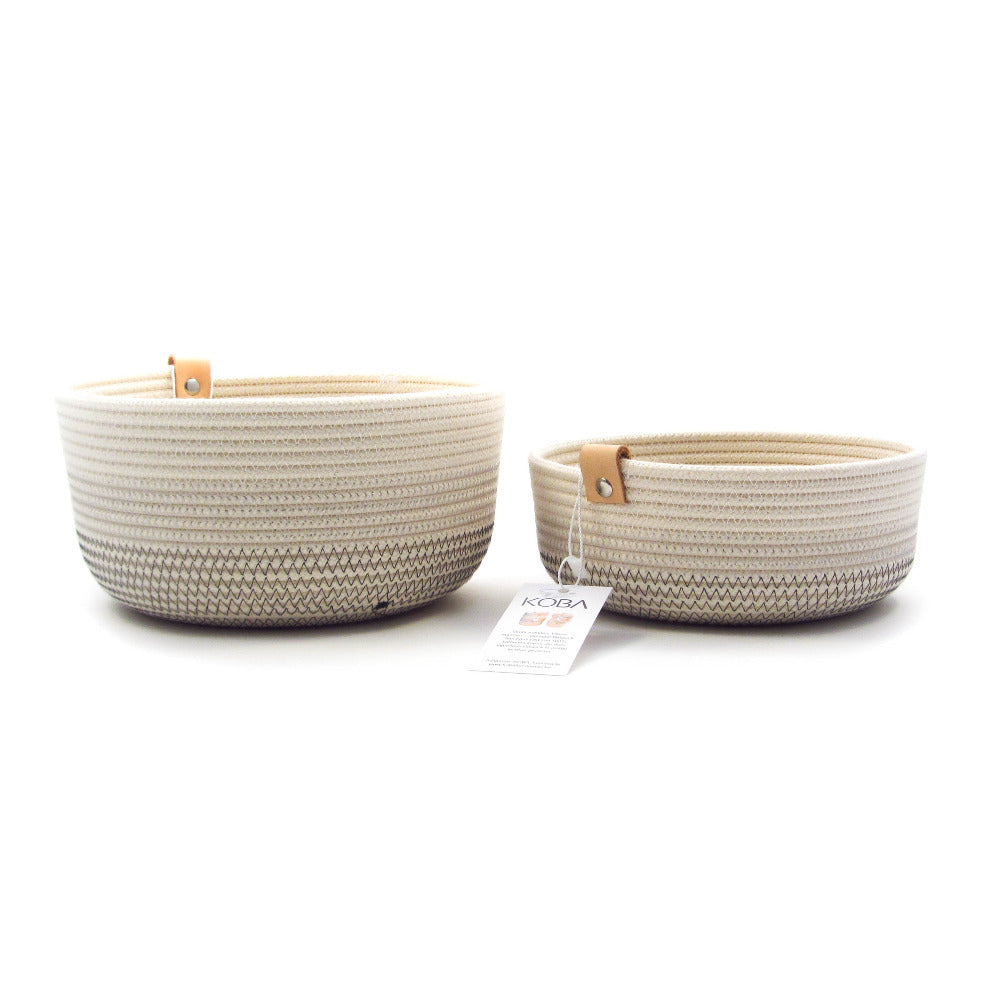 Alle handgefertigten Schalen von Koba sind in zwei Ausführungen erhältlich: Das hohe Modell gibt es in einer mittleren und einer großen Größe – ideal als Brot- oder Obstkorb. Das niedrige Modell ist in vier Größen verfügbar: Die kleinen und mittleren Schalen eignen sich hervorragend zur Aufbewahrung von Schlüsseln, Schmuck, kleinen Dekoartikeln oder anderen Kleinigkeiten. Die großen und extragroßen Schalen fügen sich harmonisch in Ihre Einrichtung ein und bieten Platz für Post, Zeitungen, Zeitschriften oder alles, was Ihnen sonst noch einfällt.