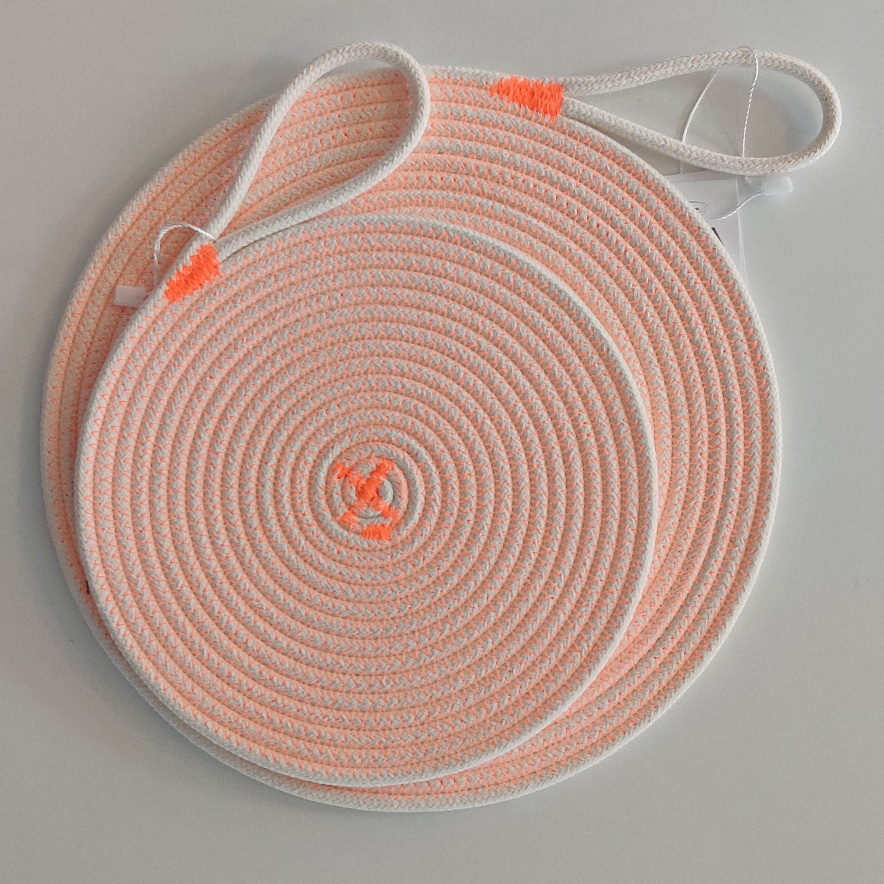 Schützen Sie Ihren Tisch stilvoll mit diesem handgefertigten Untersetzer aus recycelten Baumwollschnüren.