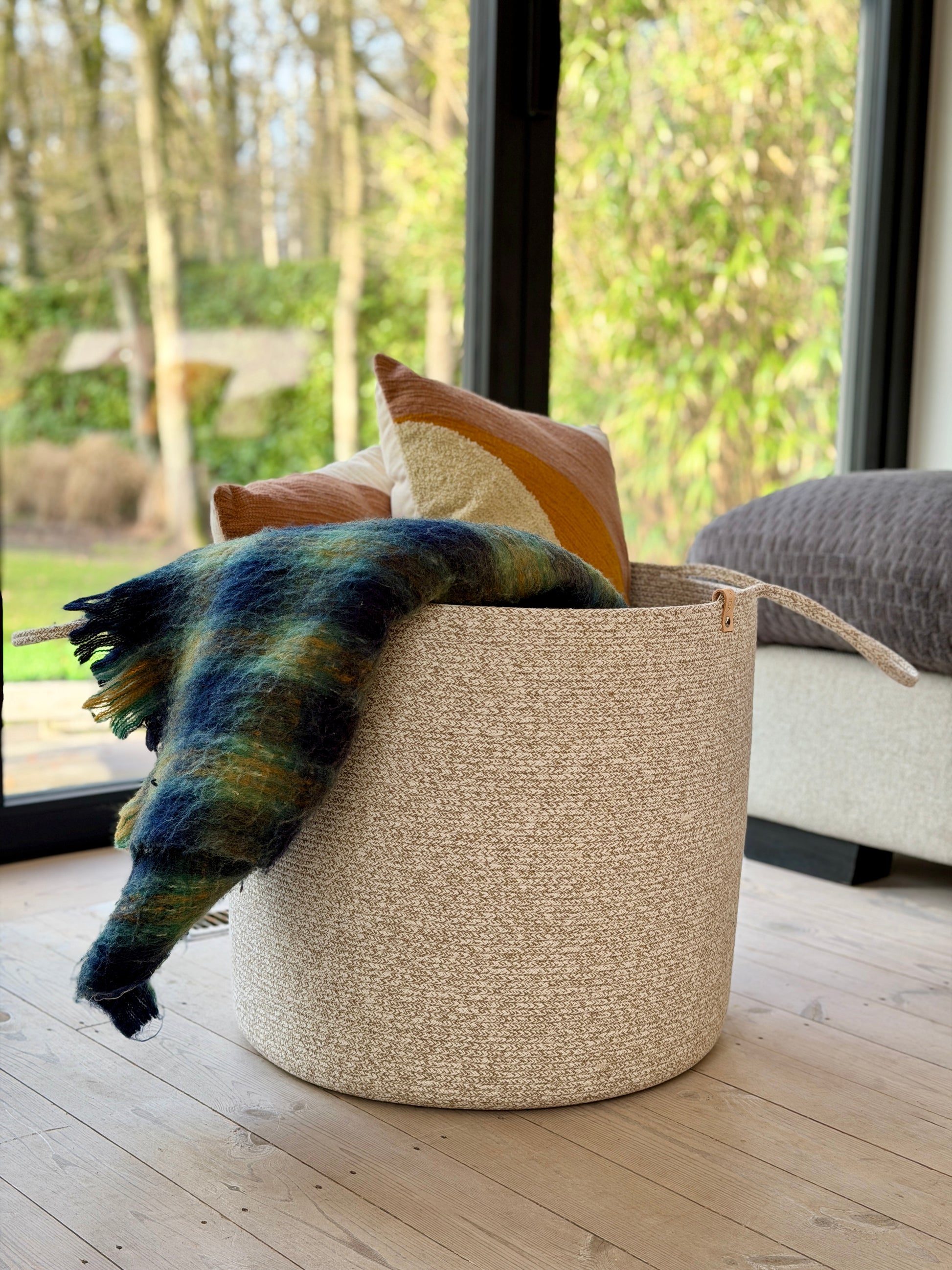 Dieser Korb ist perfekt für die Aufbewahrung von Decken, Handtüchern, Spielzeug – so ziemlich alles und alles. Er ist in den Größen Medium und Large erhältlich.