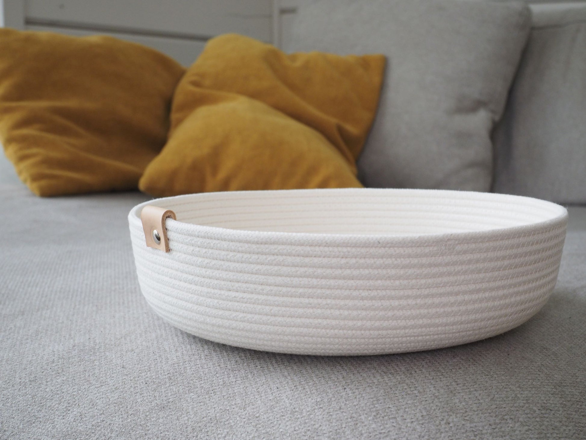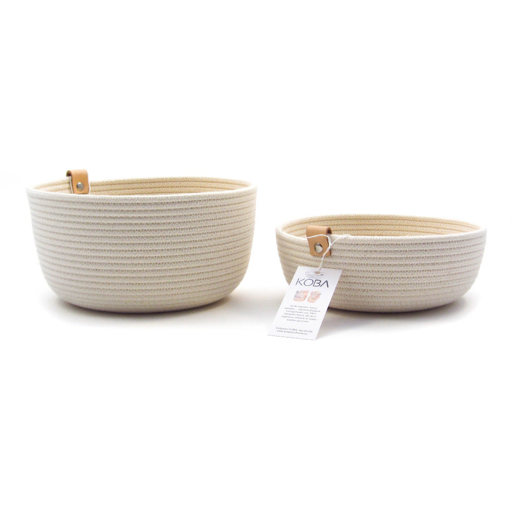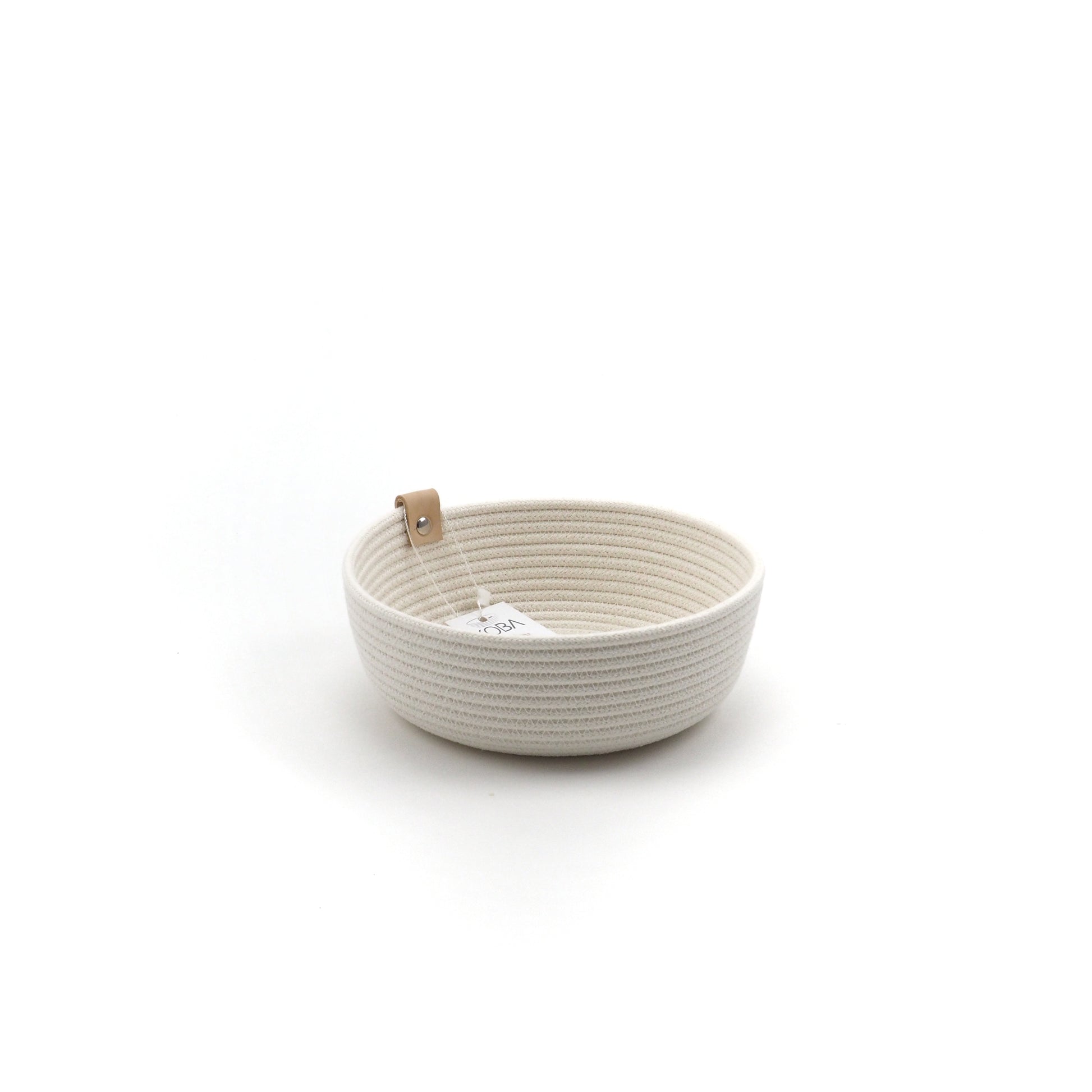 Les bols sont fabriqués exclusivement en cordon de coton de haute qualité, produit en Belgique. Une seule longue pièce est utilisée pour créer et façonner chaque bol, en utilisant un simple point zigzag. Des choix de couleurs astucieux apporteront de nombreux designs distinctifs, et comme petite touche supplémentaire, l'extrémité du cordon est toujours finie avec une belle lanière en cuir.